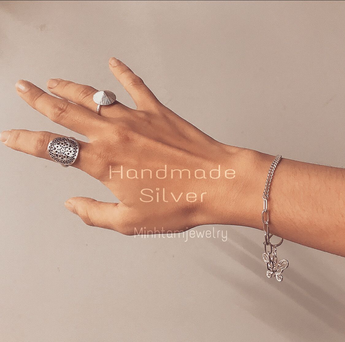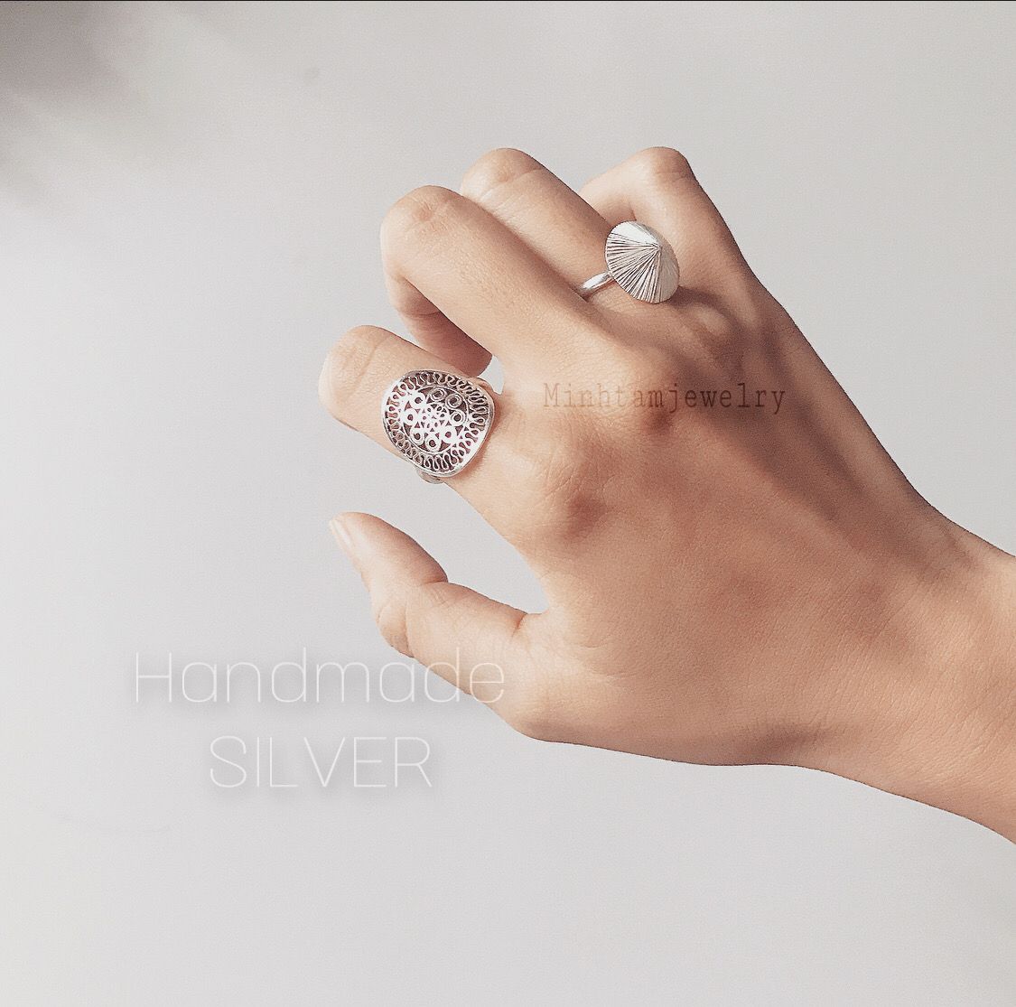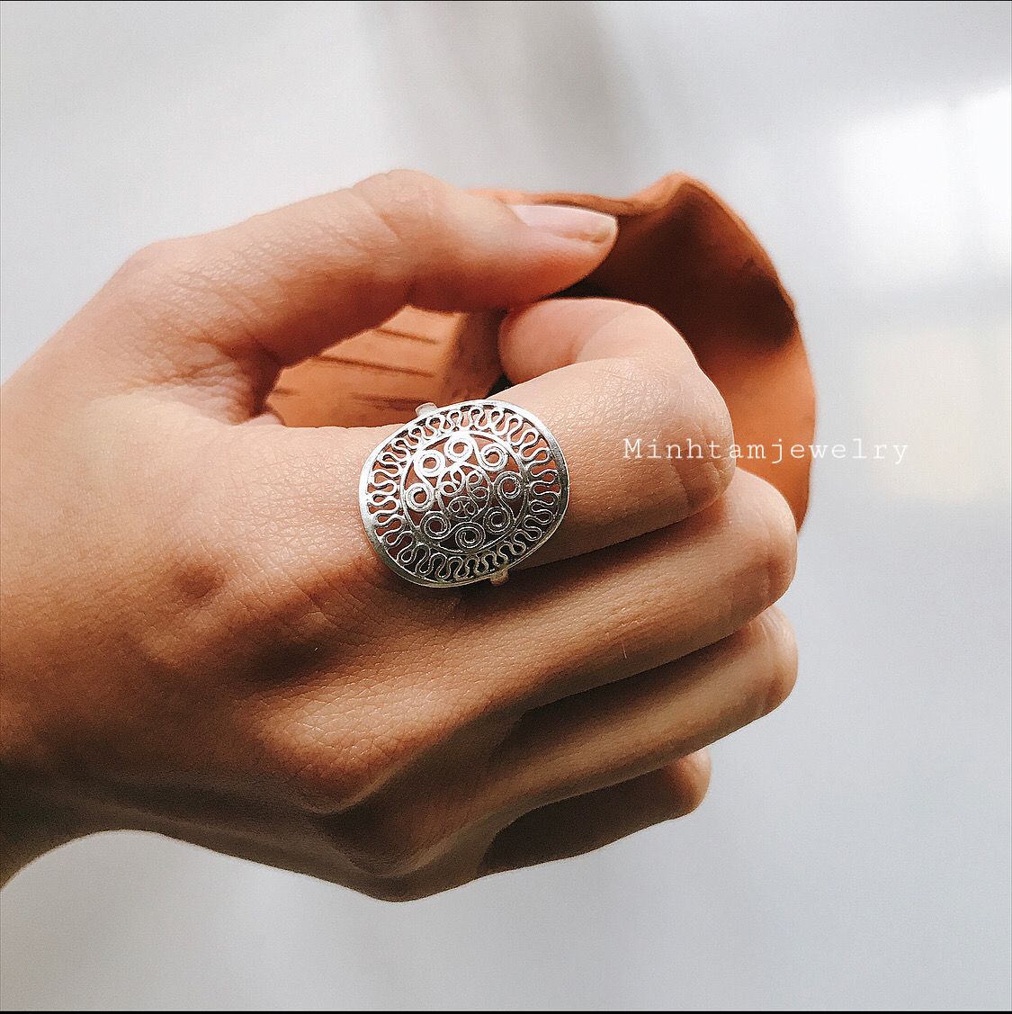 ဂ Kích thước: freesize. ဂ Materials: Chất liệu: bạc nguyên chất. #silverjewelry .Tem 925. ဂ Country of Origin : Viet Nam. ဂ Model & Photo by @ MinhtamJewelry. This ring is adjustable and should fit all finger size.