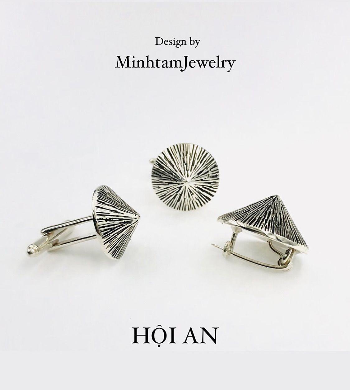 Conical hat LAPEL PIN &Cufflinks made of Silver / cài áo & măng xét chất bạc hình nón lá.